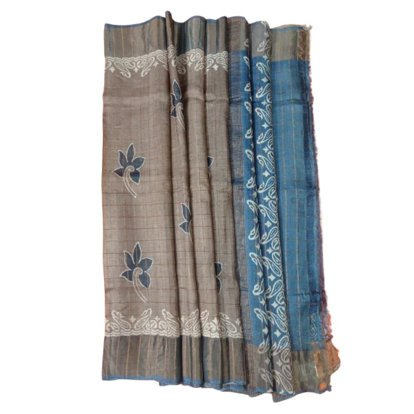 Step into a world of elegance and poise with this Beige and Blue Tussar Silk Saree—where floral grace meets handcrafted luxury.