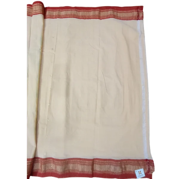 This peach Paithani cotton saree is a graceful blend of comfort and culture—crafted to make you stand out with subtle sophistication.