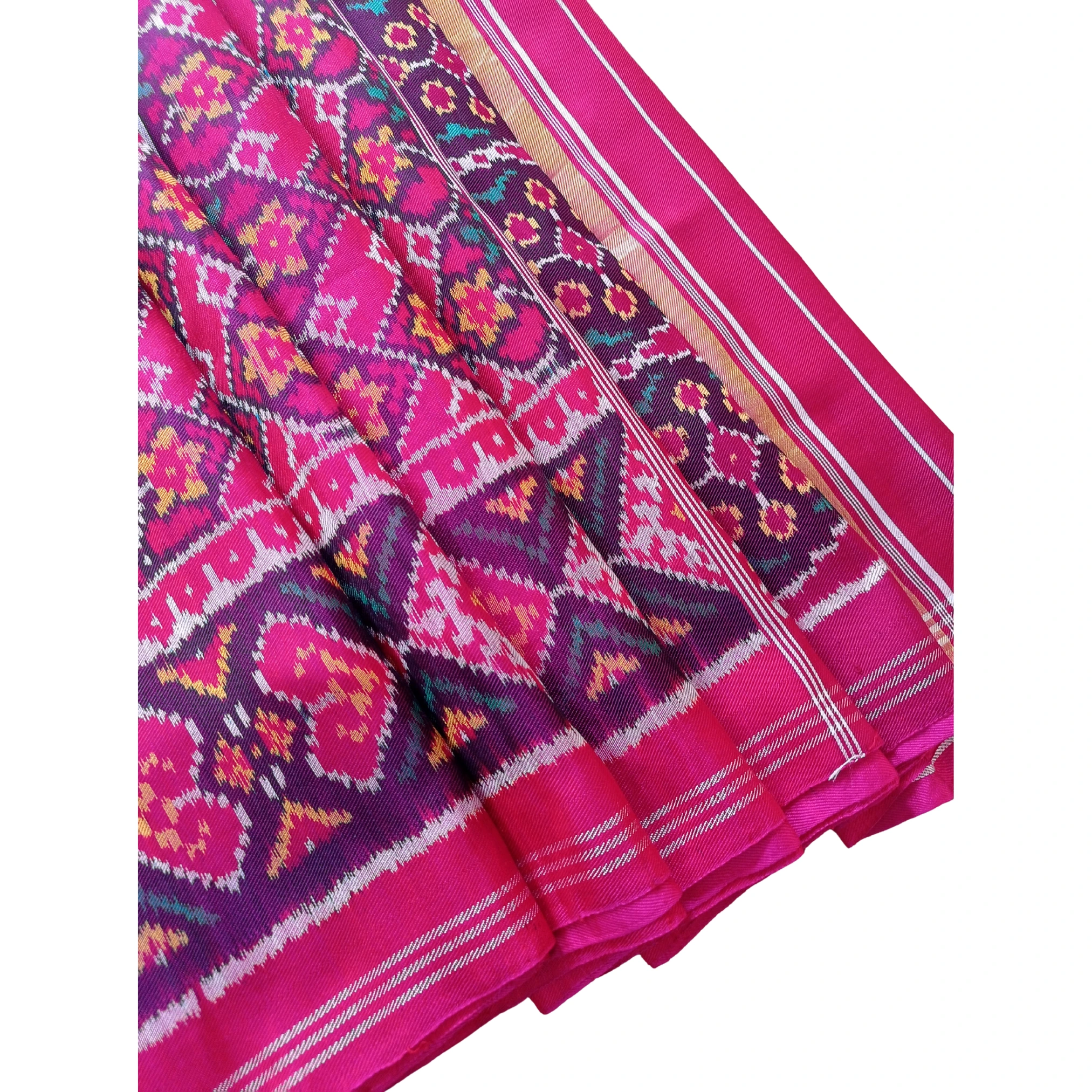 Embrace the elegance of tradition with this stunning Pink Double Ikkat Rajkot Patola Saree, a beautiful expression of India’s rich weaving heritage. The graceful pink hue adds a touch of femininity and charm, making it a timeless choice for special occasions.