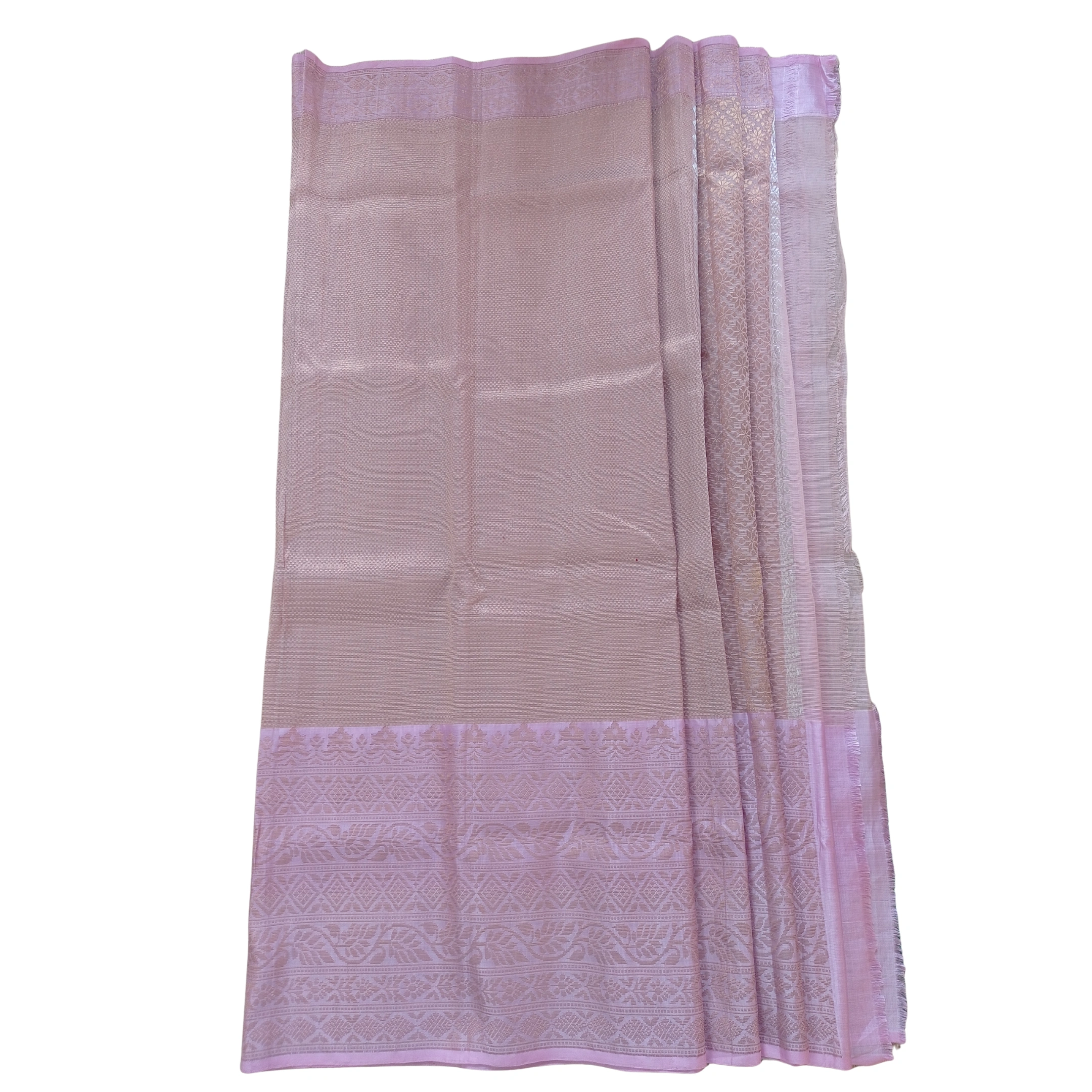Indulge in sheer elegance with this radiant Pink Double Tissue Zarikota Saree, a perfect blend of delicate texture and shimmering sophistication. The soft pink hue exudes grace and femininity, while the tissue weave enhanced with zari adds a luminous, festive charm.